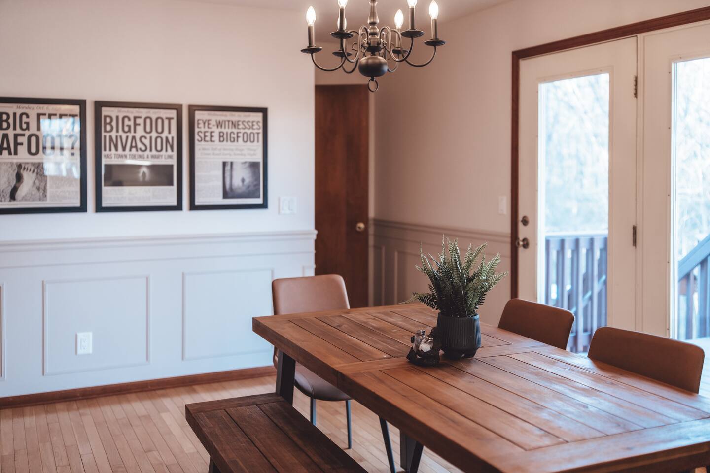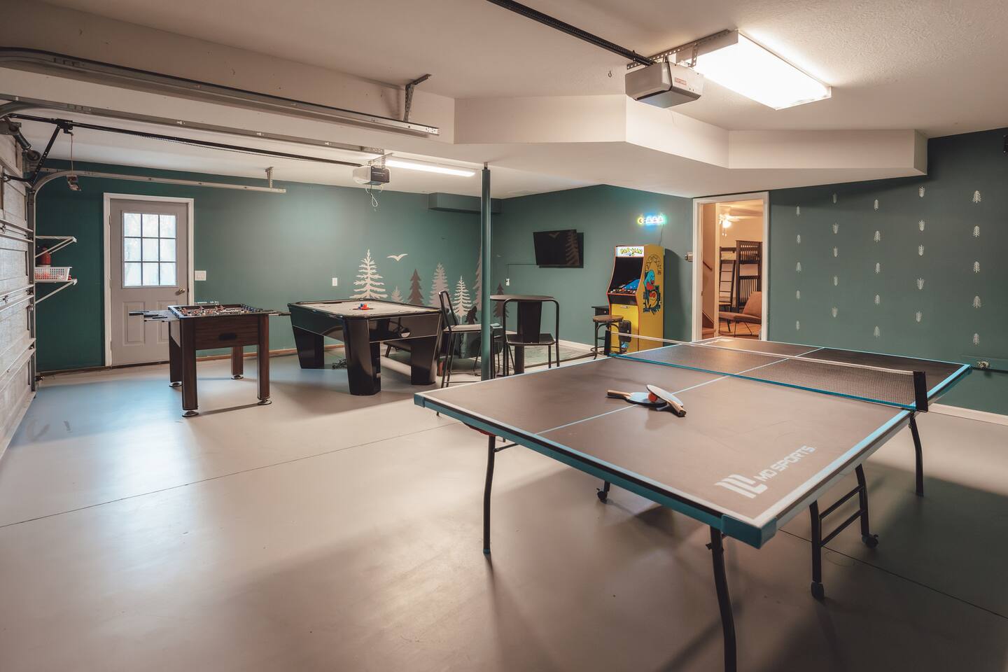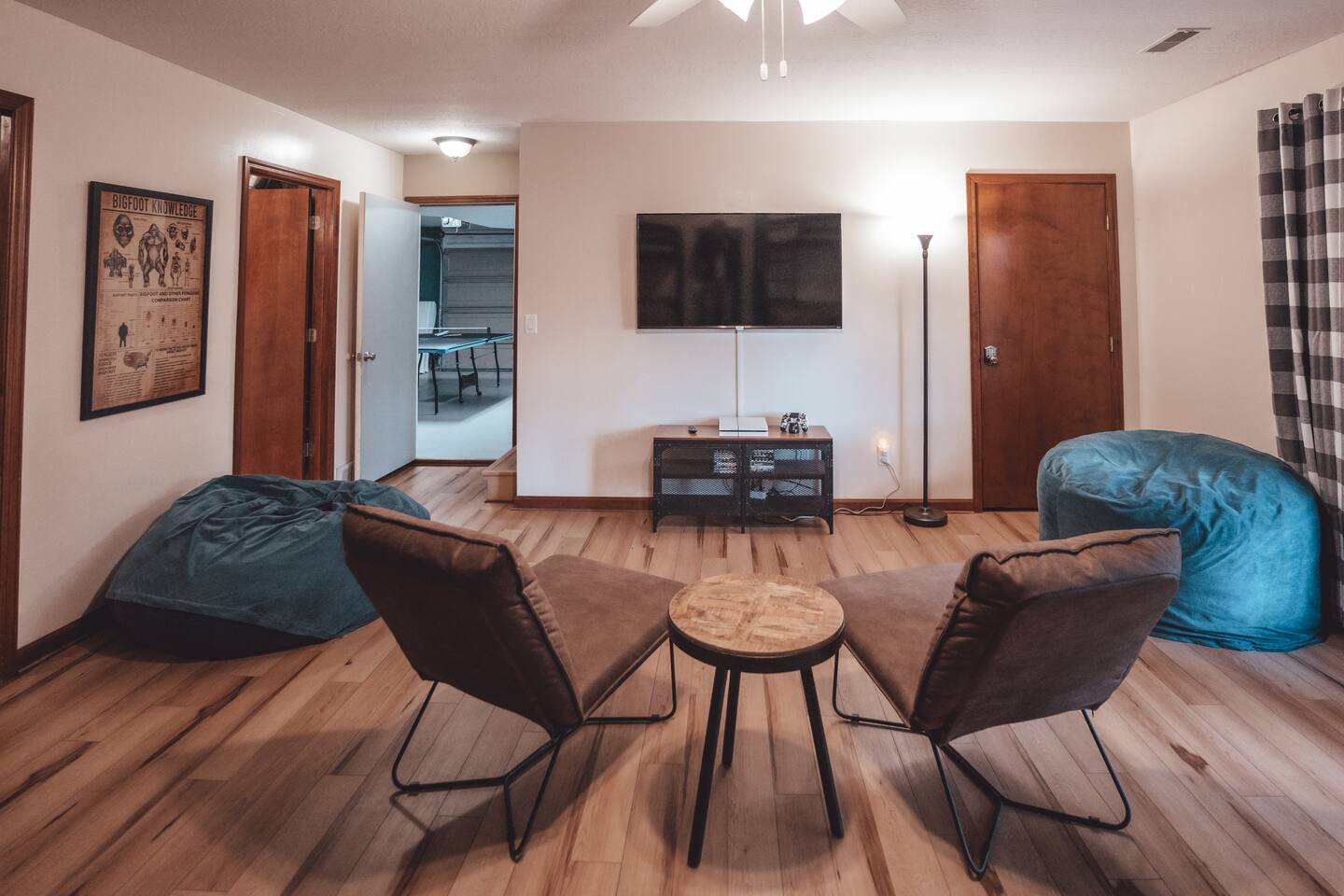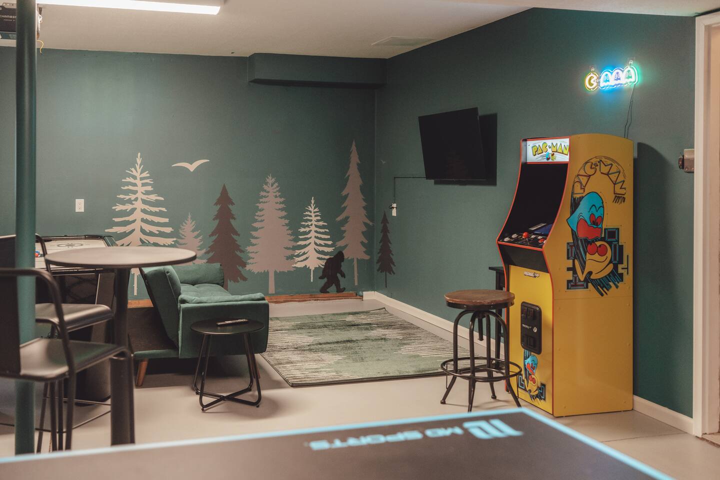 Bigfoot's Hideout: Your Luxury Hocking Hills Getaway Discover a unique blend of rustic charm and modern comfort at Bigfoot's Hideout, nestled deep within a secluded woodland setting. This entire cabin is an expansive retreat, providing a perfect escape for families, groups, or a romantic couple's getaway. Step inside and find a fully equipped kitchen ready for any meal, while stylish and comfortable furnishings invite you to relax and unwind. For those who need to stay connected, a dedicated workspace is available. Entertainment is endless in the game room, featuring ping pong, air hockey, video games, and arcade classics that are sure to be a hit with all ages. As you explore the cabin, you'll uncover playful, subtle nods to Bigfoot that add to the adventure. Outdoors, your private sanctuary awaits. Sink into the private hot tub for a soak under the stars, gather around the cozy fire pit for stories and laughter, or fire up the BBQ grill for a memorable al fresco dining experience. Amenities: • Private Hot Tub • Game Room (Ping Pong, Air Hockey, Arcade Games) • Cozy Fire Pit & BBQ Grill • Fully Equipped Kitchen • Dedicated Workspace • High-speed Wi-Fi • Smart TVs with YouTube TV & Board Games • Comfortable Bedding & Room-Darkening Shades • Cozy Bedding • Keurig + Drip Coffee maker • Washer & Dryer • Pack-n-Play + High Chair + Children's Dinnerware Explore the Area Perfectly situated for adventure, your hideout is just minutes away from Hocking Hills' most famous attractions: • Old Man's Cave: 12 minutes • Ash Cave: 16 minutes • Lake Logan: 14 minutes • Wayne National Forest: 22 minutes Your Bigfoot Adventure Awaits! Create Unforgettable Family Memories at Bigfoot's Hideout! Book Your Stay Today